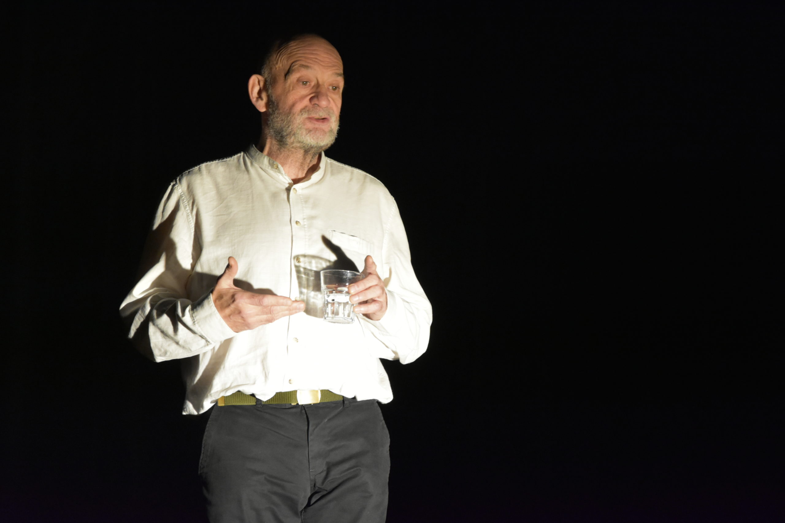 L’alcoolisme est un sujet qui a surgit au hasard de ses rencontres. Peu à peu, il cherche à en savoir davantage et rencontrera plusieurs personnes ayant souffert de cette maladie. Il leur demande de leur parler d’eux, de leur histoire. Les témoignages qu’il recueille le bouleversent. “Eau de Vie” est un spectacle qui a été nourri de tous ces gens et de leurs récits de vie.